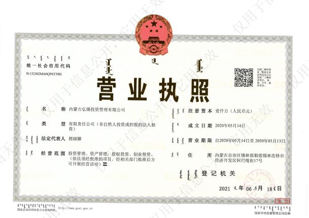 內(nèi)蒙古弘錫投資管理有限公司由錫林郭勒盟城鄉(xiāng)投資集團(tuán)有限公司成立于2020年5月14日,注冊(cè)本金1000萬(wàn)元,經(jīng)營(yíng)范圍為投資管理、資產(chǎn)管理;股權(quán)投資、創(chuàng)業(yè)投資。公司下設(shè)財(cái)務(wù)部、資金管理部、項(xiàng)目部和綜合辦公室,配備了大量房地產(chǎn)、財(cái)稅、建筑等專業(yè)人才。